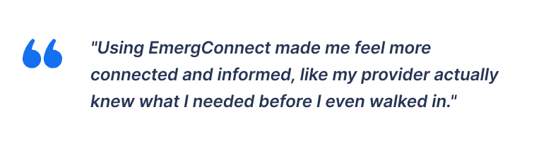 Waiting rooms can leave patients feeling disconnected. EmergConnect helps patients feel connected while still decreasing clinician workloads and improving system efficiency.